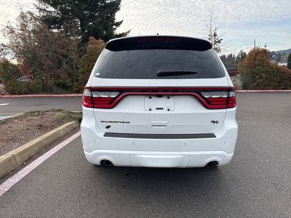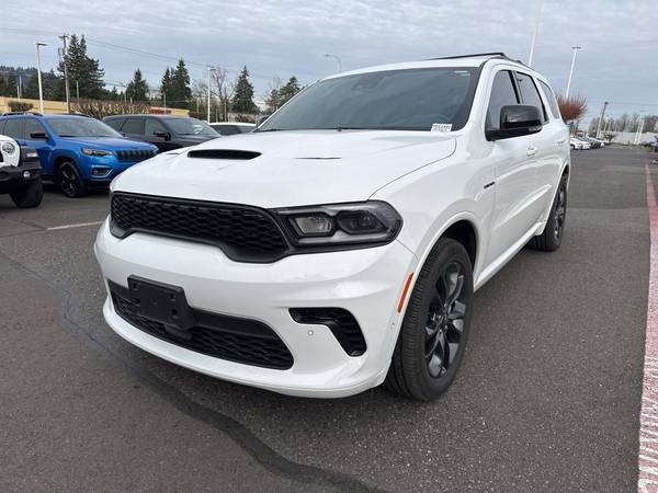 Recent Arrival! CARFAX One-Owner. Clean CARFAX. 2024 Dodge Durango R/T Plus HEMI 5.7L V8 Multi Displacement VVT 8-Speed Automatic AWD 4D Sport Utility White Knuckle Clearcoat AWD, 115V Auxiliary Power Outlet, 7 & 4 Pin Wiring Harness, Adaptive Cruise Control w/Stop, Auto-Dimming Exterior Driver Mirror, Black Roof Rails, Blacktop Package, Blind Spot w/Trailer Detection, Class IV Receiver Hitch, Dual Remote USB Port - Charge Only, Exterior Mirrors w/Heating Element, Exterior Mirrors w/Memory, Exterior Mirrors w/Supplemental Signals, Floor Console w/Leather Armrest, Full Speed Forward Collision Warning Plus, Gloss Black Badges, Gloss Black Exterior Mirrors, Heated Second Row Seats, Integrated Roof Rail Crossbars, Leather Trimmed Bucket Seats, Leather Wrapped Door Panels, LED Auxiliary Low Beam & Turn Signal, Navigation system: TomTom, Power 6x9 Multi-Function Foldaway Mirrors, Power 8-Way Driver Memory 8-Way Passenger Seats, Power Driver/Passenger 4-Way Lumbar Adjust, Power Sunroof, Power Tilt & Telescopic Steering Column, Quick Order Package 22T R/T Plus, Radio/Driver Seat/Mirrors Memory, Red Accent Stitching, Satin Black Dodge Tail Lamp Badge, Trailer Brake Control, Ventilated Front Seats, 3.09 Rear Axle Ratio, 3rd row seats: split-bench, 4-Wheel Disc Brakes, 9 Speakers, ABS brakes, Air Conditioning, AM/FM radio: SiriusXM w/360L, Apple CarPlay/Android Auto, Auto High-beam Headlights, Auto-dimming Rear-View mirror, Auto-leveling suspension, Automatic temperature control, Brake assist, Bumpers: body-color, Cloth Bucket Seats w/Shift Insert, Compass, Custom Fuel Wheels and Off-Road Tires, Delay-off headlights, Driver door bin, Driver vanity mirror, Dual front impact airbags, Dual front side impact airbags, Electronic Stability Control, Emergency communication system, Four wheel independent suspension, Front anti-roll bar, Front Bucket Seats, Front Center Armrest w/Storage, Front dual zone A/C, Front License Plate Bracket, Front reading lights, Fully automatic headlights, Garage door transmitter, Heated door mirrors, Heated front seats, Heated steering wheel, Illuminated entry, Knee airbag, Leather steering wheel, Low tire pressure warning, Occupant sensing airbag, Outside temperature display, Overhead airbag, Overhead console, Panic alarm, ParkView Rear Back-Up Camera, Passenger door bin, Passenger vanity mirror, Power door mirrors, Power driver seat, Power Liftgate, Power steering, Power windows, Radio data system, Radio: Uconnect 5 Nav w/10.1" Display, Rain sensing wipers, Rear air conditioning, Rear anti-roll bar, Rear Load Leveling Suspension, Rear reading lights, Rear seat center armrest, Rear window defroster, Rear window wiper, Remote keyless entry, Security system, Speed control, Speed-sensing steering, Speed-Sensitive Wipers, Split folding rear seat, Spoiler, Sport steering wheel, Steering wheel mounted audio controls, Tachometer, Telescoping steering wheel, Tilt steering wheel, Traction control, Trip computer, Variably intermittent wipers, Voltmeter, Wheels: 20" x 8.0" Black Noise Aluminum, Wheels: 20" x 8.0" Fine Silver, AWD, 115V Auxiliary Power Outlet, 7 & 4 Pin Wiring Harness, Adaptive Cruise Control w/Stop, Auto-Dimming Exterior Driver Mirror, Black Roof Rails, Blacktop Package, Blind Spot w/Trailer Detection, Class IV Receiver Hitch, Dual Remote USB Port - Charge Only, Exterior Mirrors w/Heating Element, Exterior Mirrors w/Memory, Exterior Mirrors w/Supplemental Signals, Floor Console w/Leather Armrest, Full Speed Forward Collision Warning Plus, Gloss Black Badges, Gloss Black Exterior Mirrors, Heated Second Row Seats, Integrated Roof Rail Crossbars, Leather Trimmed Bucket Seats, Leather Wrapped Door Panels, LED Auxiliary Low Beam & Turn Signal, Navigation system: TomTom, Power 6x9 Multi-Function Foldaway Mirrors, Power 8-Way Driver Memory 8-Way Passenger Seats, Power Driver/Passenger 4-Way Lumbar Adjust, Power Sunroof, Power Tilt & Telescopic Steering Column, Quick Order Package 22T R/T Plus, Radio/Driver Seat/Mir