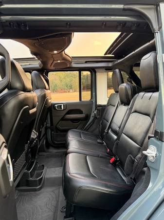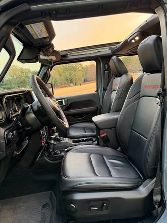 2024 JEEP WRANGLER RUBICON X . SKY ONE TOUCH POWER TOP. 3.6L V6, AUTOMATIC, 4WD AND 4X4. WARN WINCH, PERFORMANCE SUSPENSION, TOW PACKAGE. RED TOW HOOKS. GREY ANVIL CLEAR EXTERIOR, BLACK LEATHER INTERIOR. 4 DOOR. TIRES LT315/70R17. BFGOODRICH OFF-ROAD TIRES ALL TERRAIN TIRES. EXCELLENT CONDITION! NAVIGATION UCONNECT 5 NAV 12.3 TOUCH SCREEN DISPLAY. FRONT OFF-ROAD CAMERA, POWER FRONT AND POWER PASSENGER SEATS. LED LIGHTING GROUP, LED HEADLIGHTS. ACTIVE SAFETY GROUP, BLIND SPOT AND CROSS PATH DETECTION, REAR PARK ASSIST SYSTEM. PREMIUM ALPINE AUDIO SYSTEM. BODY COLOR FENDER FLARES. STEEL FRONT BUMPER, STEEL REAR BUMPER, NAVIGATION, BACKUP CAMERA, APPLE CARPLAY. ANDROID PLAY. TRAIL OFF ROAD APP. LEATHER SEATS, HEATED SEATS, HEATED STEERING WHEEL, REMOTE START SYSTEM, POWER WINDOWS, POWER LOCKS, AMBIENT LED INTERIOR LIGHTING, HINGE GATE REINFORCEMENT BY MOPAR. ROCK PROTECTION SILL RAILS, PLATE SHIELD, GORILLA GLASS WINDSHIELD, ALL WEATHER MATS, 2 KEYS AND BOOKS! JEEP STILL UNDER JEEP WARRANTY FOR ESTIMATED REMAINING 17 MONTHS OR 22K MILES. REMAINING DRIVETRAIN ENGINE AND TRANSMISSION WARRANTY FOR ESTIMATE 41 MONTHS OR 47K MILES REMAINING. EXCELLENT CONDITION!