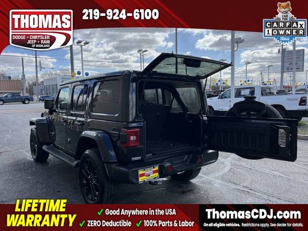 One Owner, 3-Piece Hard Top Roof, 4G LTE Wi-Fi Hot Spot, 8 Speakers, Alloy wheels, Apple CarPlay/Android Auto, Automatic temperature control, Body Color 3-Piece Hard Top, Compass, Freedom Panel Storage Bag, Front dual zone A/C, Front fog lights, Fully automatic headlights, Google Android Auto, Heated door mirrors, Heated front seats, Heated steering wheel, Integrated Voice Command w/Bluetooth, Outside temperature display, ParkView Rear Back-Up Camera, Power door mirrors, Radio: Uconnect 5 w/12.3" Display, Rear Window Defroster, Rear Window Wiper/Washer, Security system, Side Steps, Speed control, Sport Suspension, Traction control, Wheels: 20" x 8" Painted Black Aluminum.