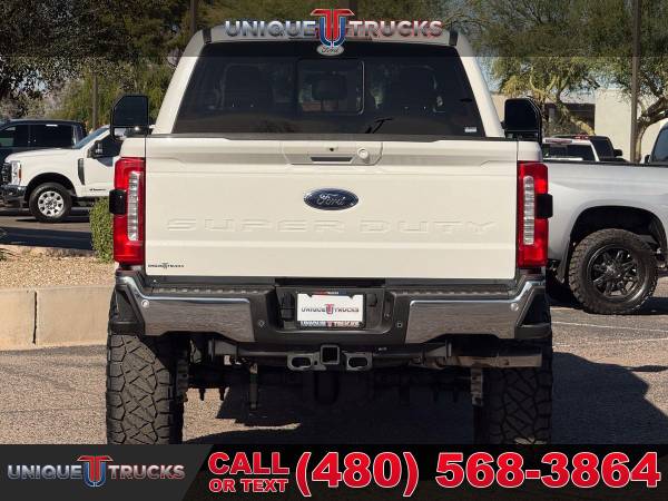 This lifted 2025 Ford F-350 SuperDuty Lariat is a serious head turner that grabs attention the moment it rolls by. The tall stance, wide setup, and clean look make this truck stand out anywhere, and it does it with confidence.The Star White exterior looks sharp and clean, especially paired with the chrome accents that give it a bold but classy feel. The brand new 7-inch Zone Off Road lift kit was professionally installed and gives this F-350 a commanding presence on the road.Sitting under the truck are brand new Hostile Lunatic wheels wrapped in 38x13.50x20 Nitto Ridge Grappler tires. The Zone Off Road dual steering stabilizer kit helps keep everything tight and smooth, even with the larger tire setup.Under the hood is the trusted 6.7 liter Powerstroke V8 turbo diesel engine paired with a smooth 10-speed automatic transmission. This setup delivers strong power for towing, hauling, or daily driving while still feeling controlled and smooth.Inside, the Black Onyx leather interior is clean, comfortable, and well laid out. You get heated and cooled power seats, ambient lighting, a large 12-inch screen, and a B&O sound system that makes every drive more enjoyable.The tech in this truck is easy to use and very helpful, including SYNC 4 with Apple CarPlay, a 360-degree camera, dual zone climate control, and intelligent access with push-button start. Everything is right where you need it.On the outside, this F-350 offers LED headlamps and fog lamps, rain-sensing wipers, PowerScope towing mirrors, a power tailgate lock, privacy glass, and a spray-in Tough Bed liner that is ready for work.This truck is built to handle the job with the FX4 Off-Road Package, skid plates, electronic locking rear axle, trailer brake controller, trailer sway control, and a 12,000-pound GVWR package. It also includes the fifth wheel prep package and dual batteries.This clean lifted 2025 Ford F-350 SuperDuty Lariat has been fully inspected and serviced, and it is ready for its next owner. It drives strong, looks amazing, and is set up the right way.At Unique Trucks, the price you see is the price you pay with no hidden markups or addendums. We offer a no obligation delivery service where this truck can be delivered right to your doorstep, you can test drive it from home, make your best deal over the phone, and if you don’t like it, you don’t buy it. We love trade-ins and encourage you to come in and check it out. __________________________ 2025* 2024* 2023* FORD* F-350* F350* F 350* FORD TRUCKS* DIESEL TRUCKS* F350 TRUCKS* LIFTED TRUCKS* DIESEL TRUCKS* POWERSTROKE* DIESEL TRUCKS* LIFTED TRUCKS* LARIAT EDITION* CREW* CREW CAB* DIESEL* TOWING* HAULING* 4X4* FOUR WHEEL DRIVE* 4WD* LIFTED F350* F350 TRUCKS* LOW MILES* LOW MILEAGE* RELIABLE* ONLY*