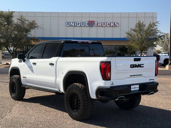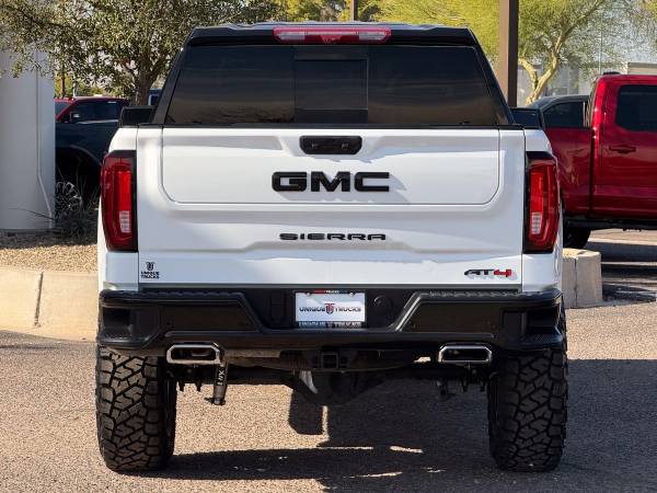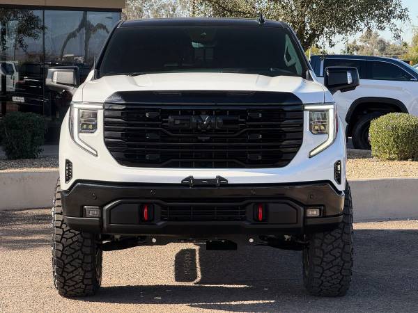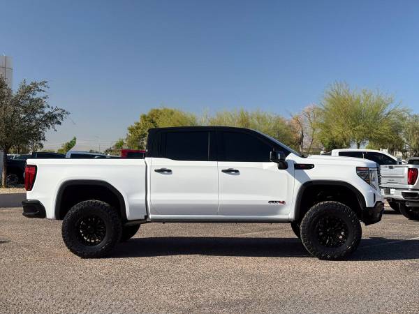 Check out this one owner, hard to find lifted 2025 GMC Sierra 1500 AT4 Edition Crew Cab 4x4 that stands tall with a serious presence and a clean, aggressive look. From the first glance, this truck makes a statement as one of the cleanest and nicest lifted trucks you’ll find, built to handle work, play, and everything in between.Presenting a professionally upgraded AT4 that features a brand new BDS Suspension 4-inch lift kit designed specifically for the GMC Sierra 1500. This setup is engineered for added ground clearance, strength, and off-road protection while keeping proper suspension and steering geometry for smooth on-road driving. Heavy-duty laser-cut crossmembers and upgraded upper control arms allow more wheel travel and better alignment, making this lift as functional as it is bold.Are you looking for a truck to conquer your needs both on and off the pavement? This Sierra sits on aggressive Hostile Ridgecrest 18x9 wheels finished in asphalt black, paired with brand new 37x12.50R18 Toyo Open Country R/T Trail tires. This wheel and tire setup fills out the stance perfectly and gives this AT4 a commanding look that is guaranteed to turn heads everywhere it goes.The exterior color combo is just as rare as it is sharp, featuring the hard to find Tuxedo-style finish with a Summit White body, gloss black roof, and gloss black front and rear bumpers. Black accents throughout the exterior add contrast and give this lifted GMC a clean, custom appearance that stands apart from standard AT4 models.Inside, the Jet Black leather interior with Kalahari accents delivers a premium feel that matches the truck’s rugged exterior. Perforated leather front bucket seats offer power adjustment, heating, and ventilation, while heated rear seats keep passengers comfortable in any season. Premium floor liners, a heated steering wheel, and driver memory settings add convenience and comfort to every drive.Under the hood sits the powerful 6.2 liter EcoTec3 V8 engine paired with a smooth 10-speed automatic transmission. This drivetrain delivers strong acceleration, confident towing power, and an engaging driving experience whether you’re cruising the highway or hauling gear. The active exhaust adds a deep tone that fits the bold personality of this lifted AT4.Safety and driver assistance features are packed into this Sierra with GMC Pro Safety, including automatic emergency braking, forward collision alert, front pedestrian braking, lane keep assist with lane departure warning, and IntelliBeam auto high beams. A safety alert seat and tire pressure monitoring with fill alert add extra confidence behind the wheel.Performance features include an auto-locking rear differential, two-speed Autotrac transfer case, skid plates, hill descent control, and StabiliTrak with trailer sway control and hill start assist. The trailering package with trailer brake controller ensures this truck is ready to tow or haul whenever duty calls, making it a true work-ready machine.Technology is front and center with a large 13.4-inch touchscreen infotainment system featuring Google built-in, wireless Apple CarPlay, and wireless Android Auto. A Bose premium sound system, adaptive cruise control, keyless open and remote start, and a 12.3-inch digital driver information display keep every drive modern and connected.This clean one owner lifted 2025 GMC Sierra 1500 AT4 Edition is fully serviced and ready to go for its next owner. Unique Trucks offers a no obligation delivery service, allowing you to test drive right from the comfort of your own home. We love trade ins and invite you to come check out our selection of trucks and lifted trucks in person. ___________________________________________________ 2025* 2024* GMC* SIERRA* 1500* AT4* CREW* CAB* 6.2 LITER* ECOTEC3* V8* GMC TRUCKS* SIERRA* AT4* AT4 EDITION* GMC TRUCKS* GAS TRUCKS* 4X4* FOUR WHEEL DRIVE* 4WD* TUXEDO* GMC TRUCKS* LIFTED SIERRA* LIFTED 1500* LIFTED TRUCKS* FOUR WHEEL DRIVE* 4WD* 4X4* LOW MILES* LOW MILEAGE* RELIABLE* ONLY*