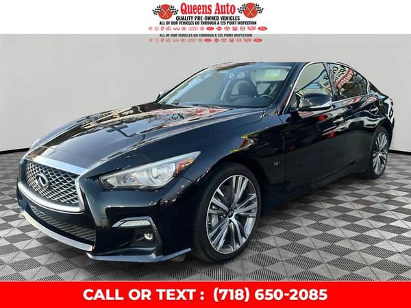 ✔️ 2018 INFINITI Q50 3.0t SPORT AWD – Fully Loaded, Pristine Condition, Carfax Buyback GuaranteeExperience luxury, performance, and reliability like never before with this exceptional 2018 INFINITI Q50 3.0t SPORT AWD, now available at Queens Auto. With only 88,631 miles, this meticulously maintained sedan delivers a thrilling driving experience, stunning design, and advanced technology, making it the perfect choice for anyone seeking a sophisticated, sporty, and dependable vehicle.Performance & PowerUnder the hood, the Q50 SPORT features INFINITI’s renowned 3.0-liter V6 twin-turbocharged engine, paired with an advanced All-Wheel Drive (AWD) system, producing exhilarating horsepower and torque for smooth, confident acceleration in all conditions. Its sport-tuned suspension ensures precise handling and an engaging driving experience, while the advanced AWD provides stability, traction, and control, making it ideal for city streets, highways, or challenging weather conditions.Exterior DesignThis Q50 SPORT AWD boasts a sleek, aggressive design that commands attention. From its bold front grille to its aerodynamic lines, muscular stance, and signature LED headlights, the exterior exudes a perfect balance of elegance and sportiness. The alloy wheels complement the dynamic styling, while the dual exhaust system highlights its performance-oriented nature. Every angle of this vehicle reflects INFINITI’s commitment to premium design and craftsmanship.Interior Comfort & LuxuryStep inside to discover a luxurious, driver-focused cabin that blends comfort, technology, and sophistication. Premium materials, including soft-touch surfaces, leather-appointed seats, and modern accents, create an upscale ambiance. The SPORT trim offers heated front seats, power-adjustable seating with memory functions, and a spacious interior designed to accommodate both driver and passengers in comfort and style.Advanced Technology & FeaturesThis fully loaded Q50 is packed with cutting-edge technology to keep you connected, safe, and entertained:INFINITI InTouch™ infotainment system with touchscreen displayNavigation system for effortless travelBluetooth® connectivity for hands-free calling and audio streamingPremium audio system delivering crisp, immersive soundMultiple USB ports and auxiliary inputs for device integrationDual-zone automatic climate control for personalized comfortSafety & Driver AssistanceYour safety is a priority in the INFINITI Q50 SPORT AWD. It comes equipped with advanced safety and driver assistance features, including:Blind-Spot WarningForward Emergency BrakingLane Departure Warning & PreventionAround View® Monitor for enhanced parking and maneuveringTraction and stability control systems for maximum confidence on the roadCondition & ReliabilityThis vehicle has been fully serviced and professionally detailed, ensuring it looks and drives like new. It also comes with a Carfax buyback guarantee, providing peace of mind that this INFINITI has a clean history. Whether you are commuting, traveling, or enjoying a weekend drive, this Q50 delivers reliable performance, advanced technology, and luxury comfort every mile of the way.Financing OptionsAt Queens Auto, we make buying your dream car easy. We finance everyone, regardless of credit history—no credit, bad credit, or first-time buyers are welcome. Our team is dedicated to helping you get approved and drive away in the vehicle you love.Why Choose Queens AutoLocated in the heart of New York, Queens Auto has built a reputation for offering high-quality pre-owned vehicles, exceptional customer service, and hassle-free financing solutions. Our goal is to ensure every customer leaves satisfied, confident, and excited about their purchase.Visit Us TodayDon’t miss your chance to own this stunning 2018 INFINITI Q50 3.0t SPORT AWD. With a perfect blend of power, style, technology, and luxury, it’s a vehicle that truly stands out in its class. Visit us at Queens Auto, 55-11 Northern Blvd, Woodside, NY 11377, or explore more details on our website at www.nycusedcars.com. This is your opportunity to drive home a fully loaded luxury sedan with confidence and style.VIN: JN1EV7AR7JM443689Mileage: 88,631 milesQueens Auto – Luxury, Performance, and Financing for Everyone.
