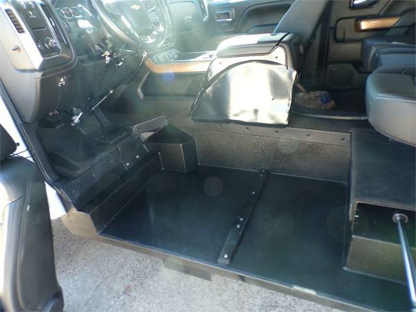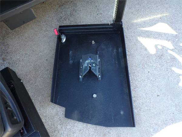 This truck also has a bed-mounted Bruno PUL1100 Out-Rider wheelchair lift. It is rated to 350 lbs. This allows someone that prefers to drive from the factory seat to be able to transfer and stow their chair in the back of the truck.