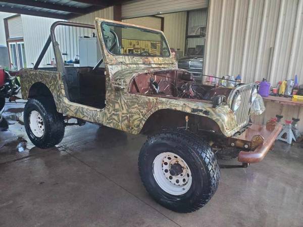 ** 1982 Jeep CJ7 Laredo non running camo Project Cheap Jeep is what you see & includes body, frame, both differentials, 31" All Terrains on 15x8 steel wheels & serious bumpers front & rear, has fixable rust & has TX salvage title. It is missing motor, tranny, transfer case, seats or top, doors & more & is Cheap Jeep priced @ $1900 stock # 08503