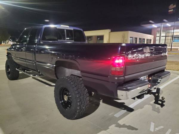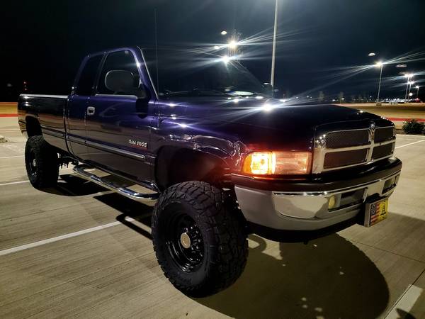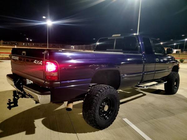 ** 1999 Dodge Ram Laramie SLT 2500HD Quad Cab 4WD, rare Deep Amethyst Pearl "Purple", black leather, Fuel Injected 5.9 Cummins 24 Valve Diesel, 4 spd auto, 241HD transfer case w skid plate, ps, pb, pw, a/c, tilt, pl, cruise w steering wheel controls, power seat, power heated fold away mirrors, trailer tow group, Dana 60 front & 70 rear diffs, engine block heater, slide rear window, keyless entry w alarm, Infinity sound system & more.