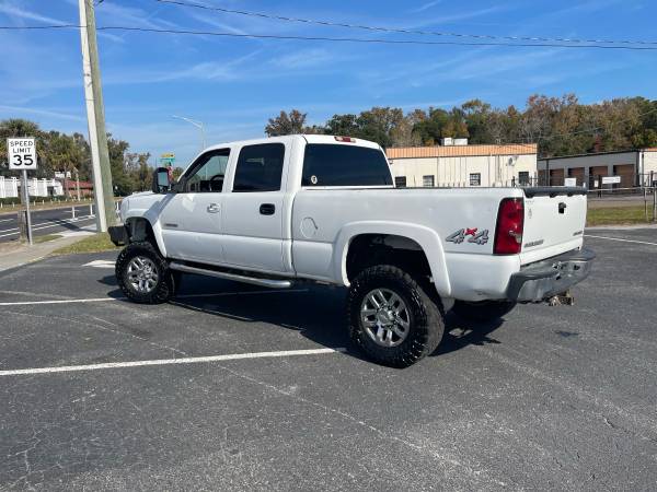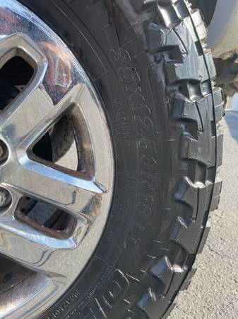 Lifted Silverado 2500HD Crew Cab with 2015 chrome Chevy rims.