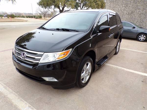 You are looking at a very clean and nice 2012 Honda Odyssey Touring with a VMI Northstar lowered-floor, power IN-FLOOR SLIDING ramp, power kneeling mobility conversion. This van has 131,370 miles on it. It has a clean title. You can see the Carfax at see any time on our website (www.ntsmobilityvans.com). Just click on the button on the listing for the van. I would also be happy to send you a copy, just ask. WE JUST HAD THE ENTIRE VAN REPAINTED DUE TO THE CLEAR COAT HAZING AND FLAKING OFF. That is a very common problem with these vans that are dark colors in the south The exterior is in nice shape with no issues I can find, now. The interior is also in very nice condition. There are no holes or tears in the leather seats, headliner or rubber flooring. The van has not been smoked in. The tires are BRAND NEW This van has been gone over and been inspected and serviced by 2 mechanics, a mobility tech, a front-end shop and a detailer. PLEASE SEE BELOW FOR ALL THE FACTORY AND CONVERSION EQUIPMENT, PLUS ALL THAT WAS JUST DONE TO THIS VAN. THIS VAN IS 100% READY TO BE DRIVEN ANYWHERE.